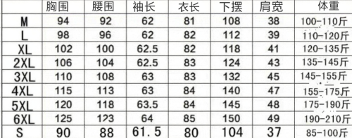 尺寸:S-6XL